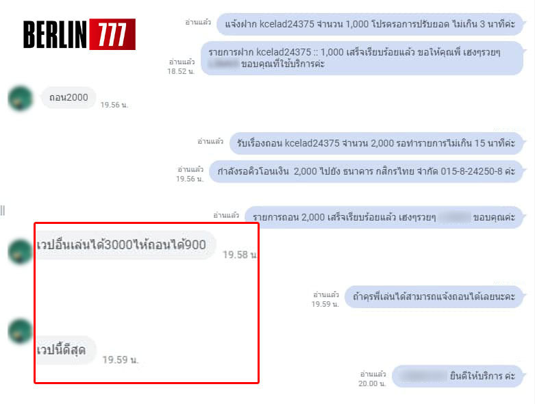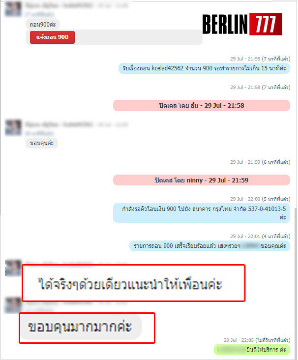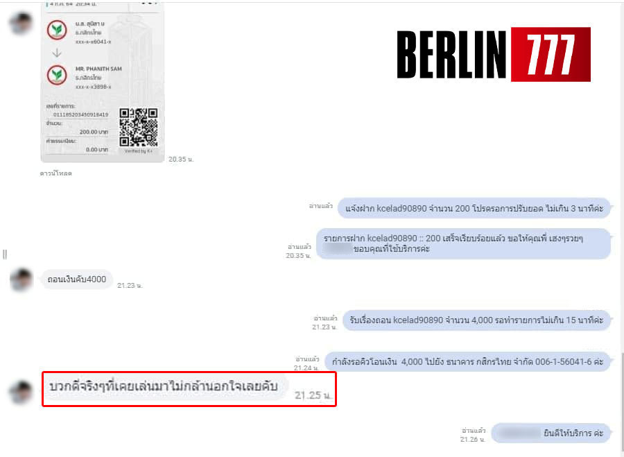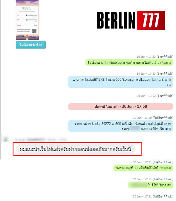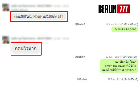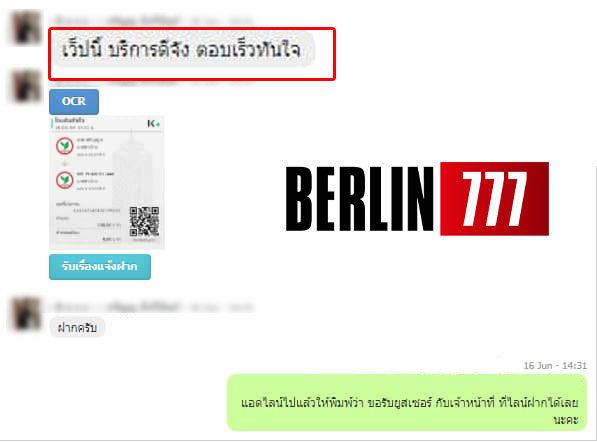 BERLIN777 รีวิวคำชมจากลูกค้า