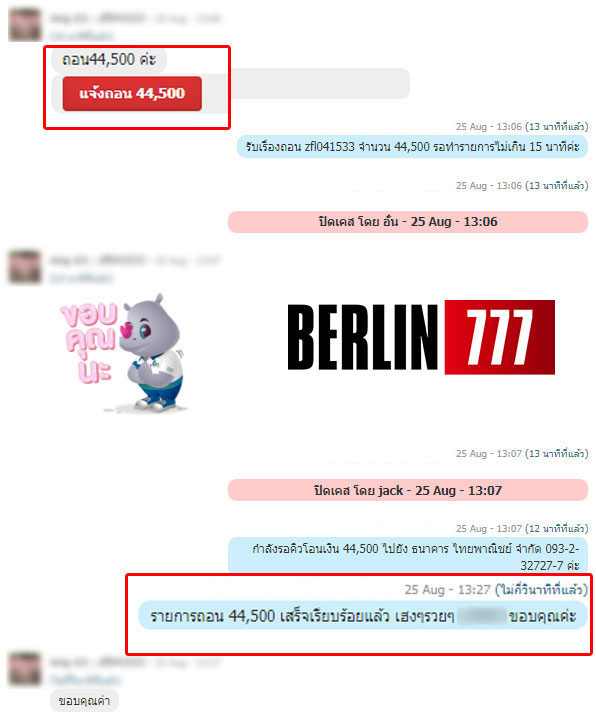 รีวิวคำชมจากลูกค้า BERLIN777..มากกว่า 1000 รีวิว แคปจากพนักงานที่ให้บริการ call center ลูกค้า พนักงานเรามากกว่า 100 คู่สายดูแล support อย่างดีที่สุด ให้ความสำคัญในการดูแลลูกค้ามาเป็นอันดับ 1 เราเน้นย้ำ ถึงงานบริการ ลูกค้าอย่างดีเยี่ยม เชื่อมั่นได้เลยว่าเดิมพันกับเราปลอดภัย การันตรีการฝาก-ถอน รวดเร็วทันใจ ใส่ใจทุกบริการ
